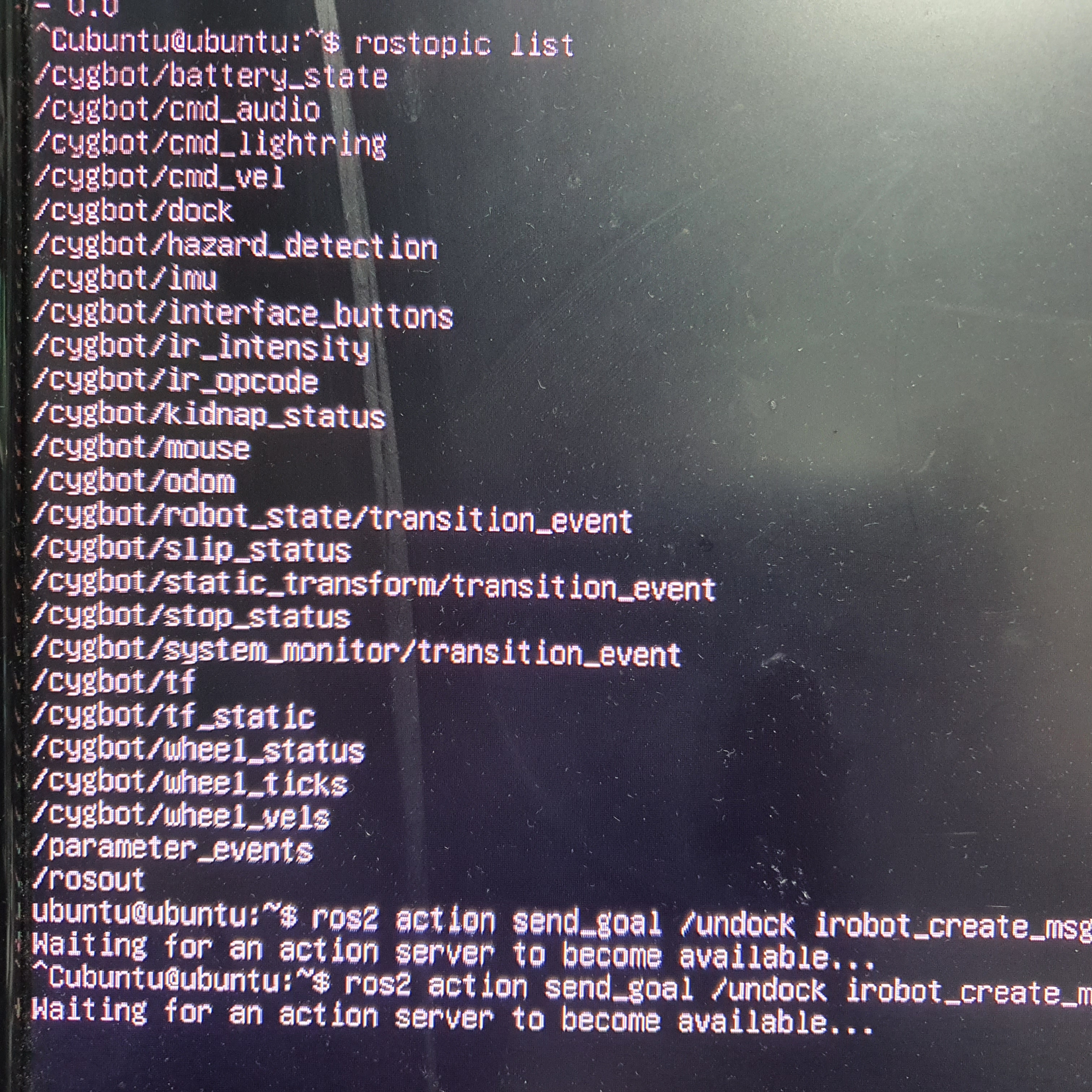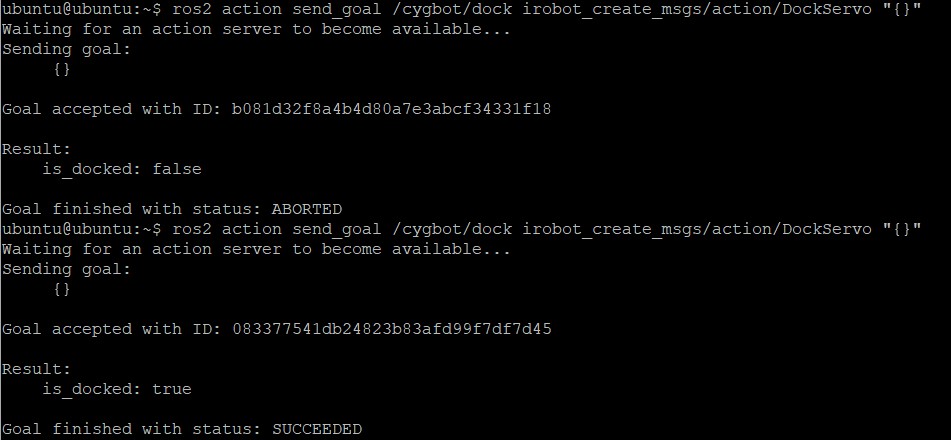 ros2 action send_goal /cygbot/dock irobot_create_msgs/action/DockServo "{}"